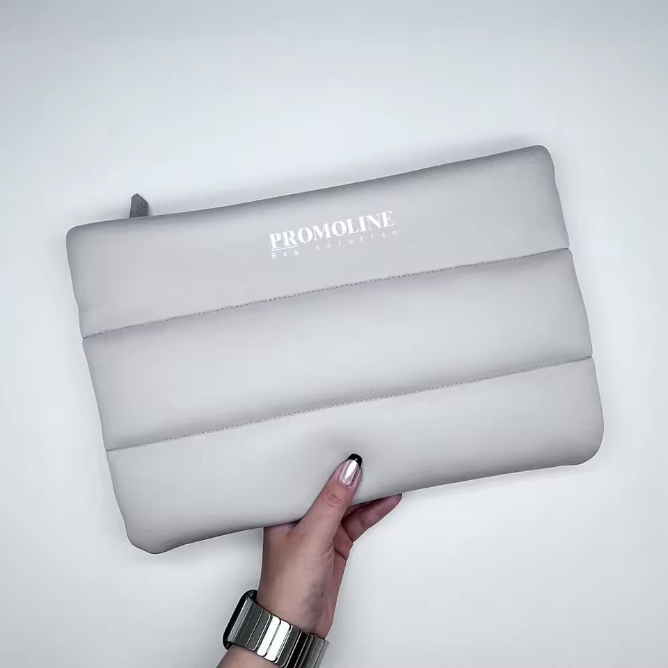 Fashion Custom Logo Quilted Puffer Neoprene Cosmetic Bag Waterproof Padded Makeup Pouch Gray Wristlet Clutch Travel Organizer