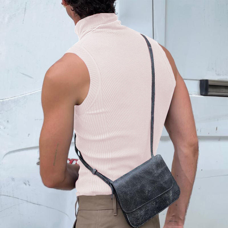 Fashion Custom Logo Turtleneck Tank Tops Workout Solid Color Sleeveless Shirts Casual Ribbed Vest T-shirt for men