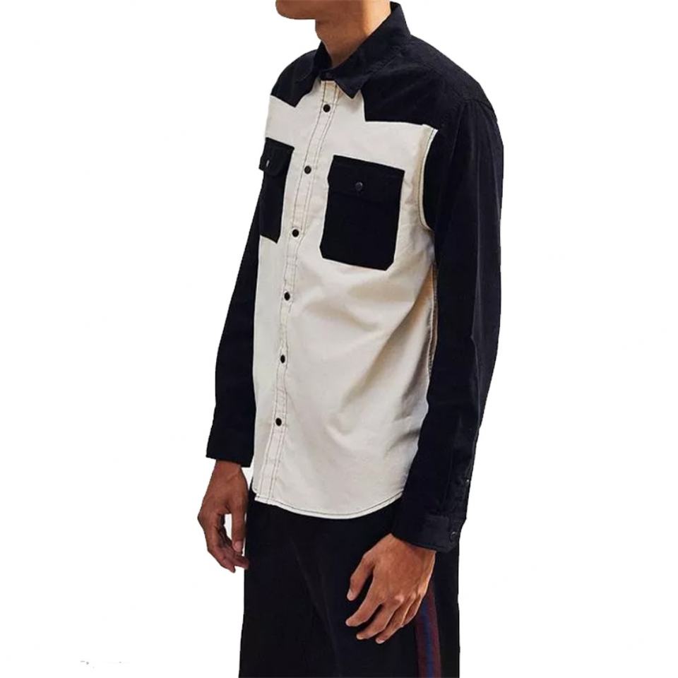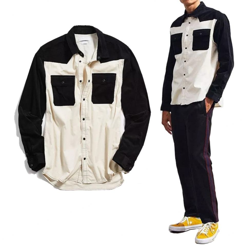 Fashion Custom Men's Long Sleeves Shirt Color Blocked Contrast Corduroy Patches Pockets Slim Fit Casual Shirts for Men