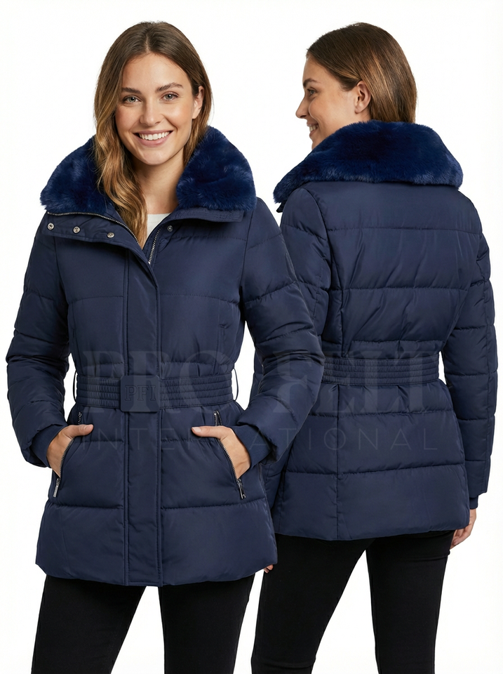 Fashion Custom Style Whole Sale Faux Fur Collar High Quality Quilted Puffer Coats Winter Warm Customized Puffer Quilted Coats