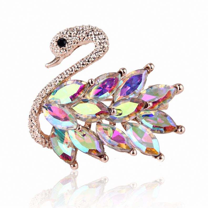 Fashion Cute Alloy Crystal Swan Pin Corsage Clothing Accessories Brooch Men and Women