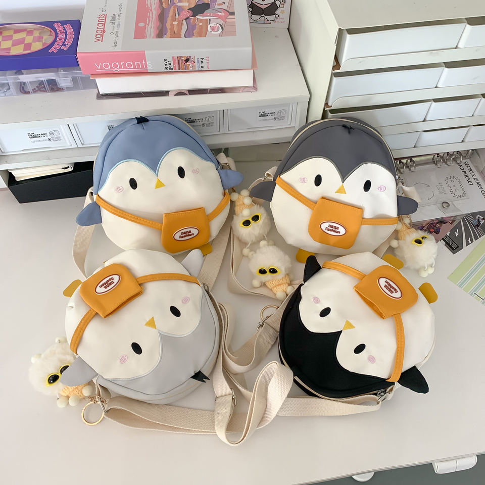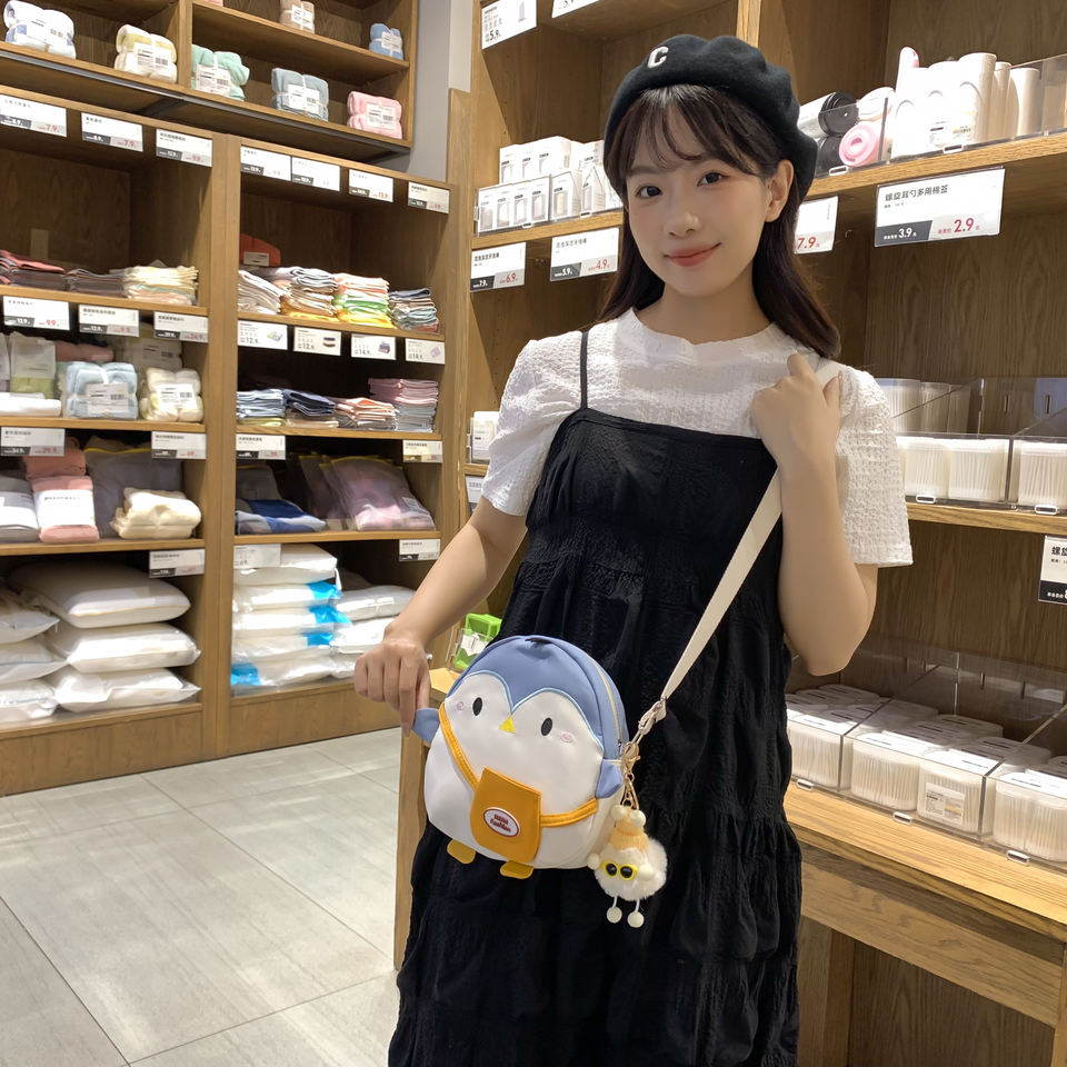 Keywords:Cute Little Penguin Fluffy Backpack Preppy Girl Skew Straddle Bag