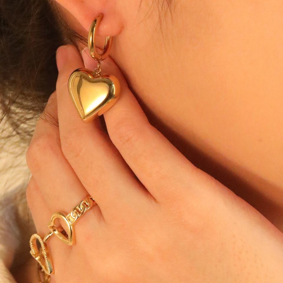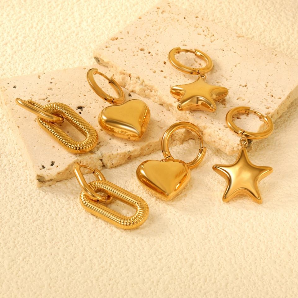 Fashion Dangle Huggie Hoop Earrings Stainless Steel Jewelry 18K Gold Plated Elegant Smooth Chunky Heart Star Earrings for Women