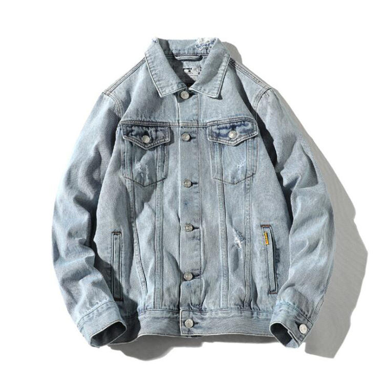 Fashion Denim Jacket Men Hole Retro Motorcycle Basic Coat Streetwear Hip Hop Bomber Jacket Cowboy Men's Jean Jacket