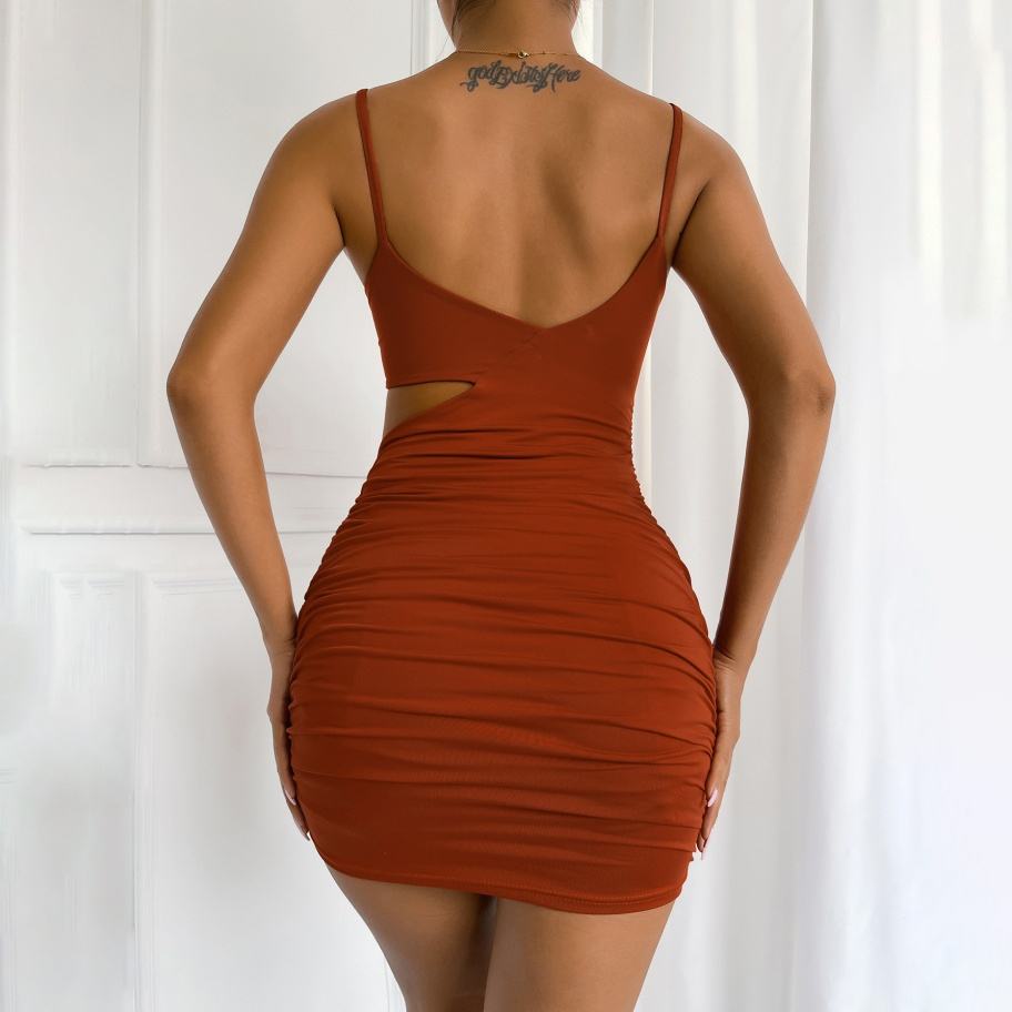 Fashion Design Irregular Dress Women Solid Color Sexy Hollow Straps Skinny Mini Dresses Breathable Eco-Friendly for Ladies