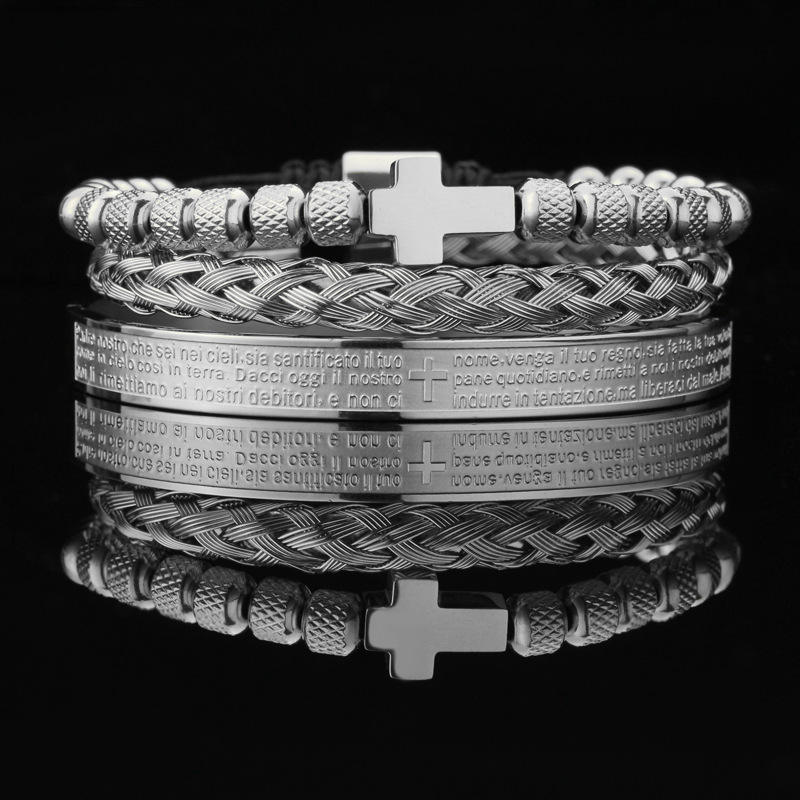 Fashion Design Jewelry Stainless Steel Gold Plated Animal Lion Charm Braided Adjustable Bangles Bracelet Set for Men