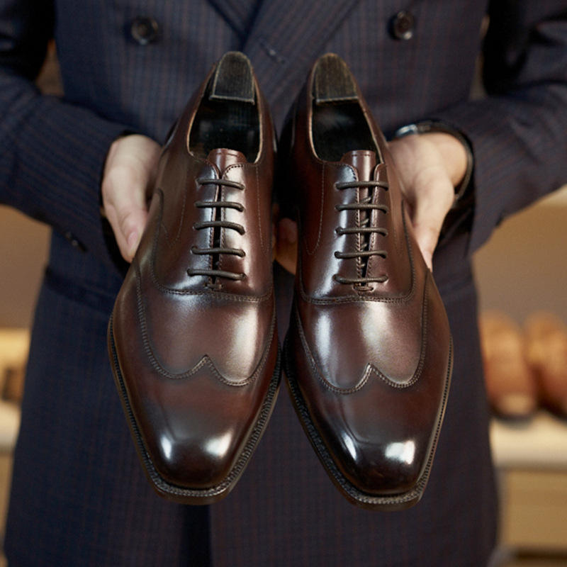 Fashion Design Leather Formal Shoes with Perforated Details and Shock Absorption Insole for men's Business Dates shoes
