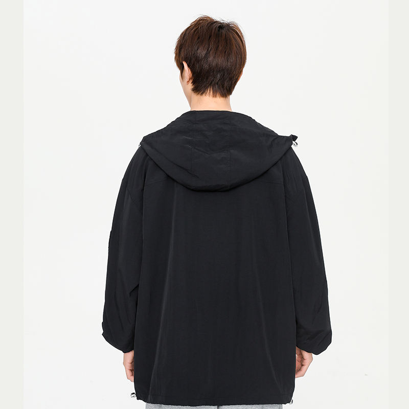 Fashion Design Mens Outdoor Hiking Waterproof Windbreaker Jacket Solid Color Polyester Hoodie Jacket With Zipper