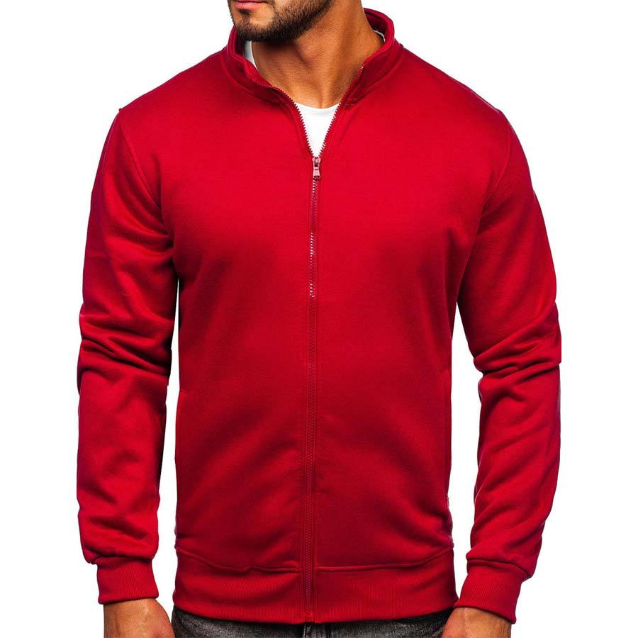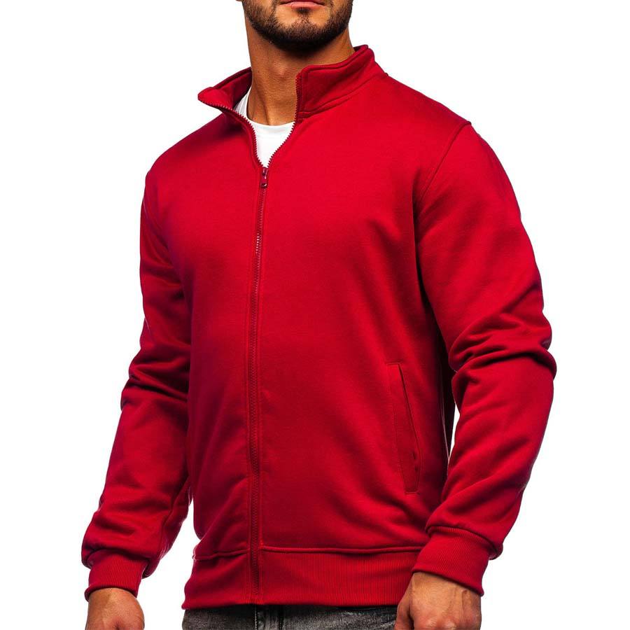 100% Cotton Fleece Fashion Design OEM Logo Cotton Solid Red Full Zipper Stand Collar Mens Thermal Jacket