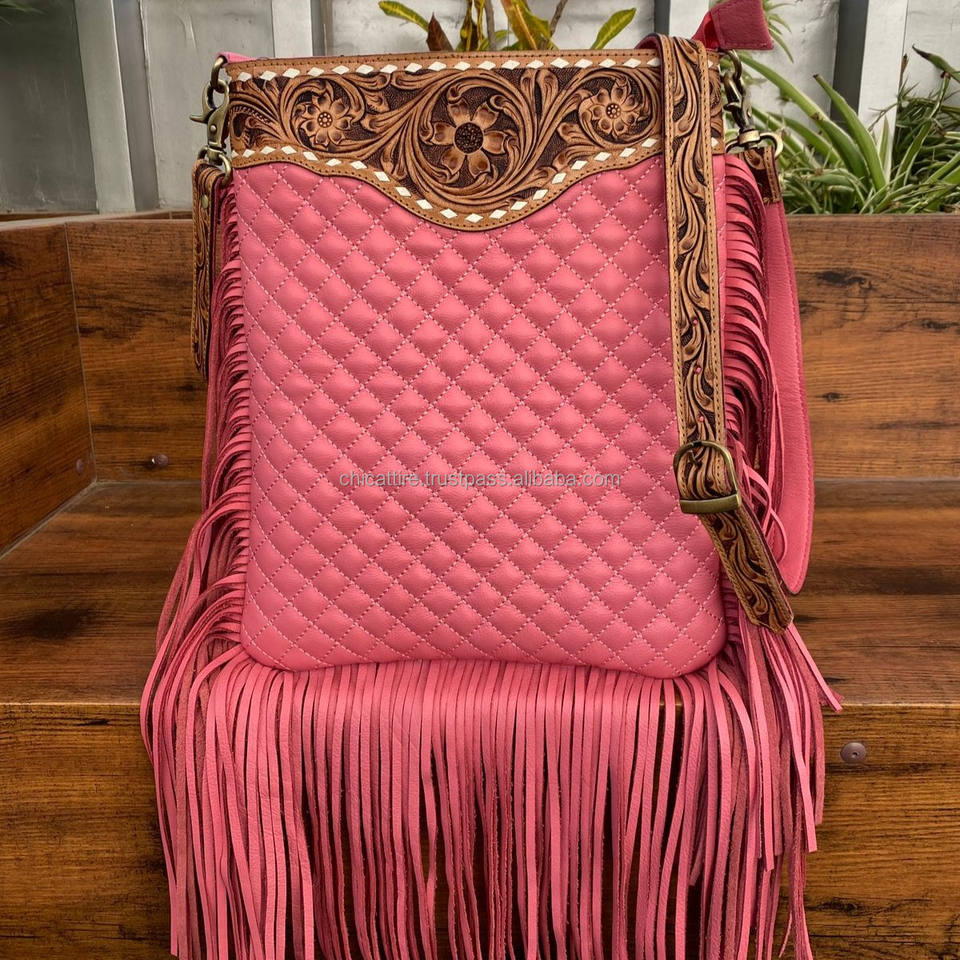 Fashion Designer Hot Selling Hand Tooled Quilted Leather Fringe Crossbody Bag Wholesale Price Diamond Lattice Shoulder Handbags