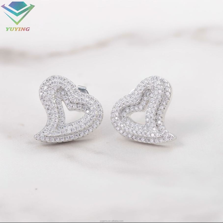 Fashion Earring Jewelry Heart Earrings Real S925 Silver With Bling Moissanite Hiphop Earrings Stud Women Girl Gift Earrings Stud