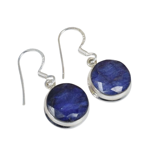Fashion Earrings Blue Sapphire 925 Sterling Silver Gemstone Hook Earring Handmade Jewelry Round Shape Gift for Christmas
