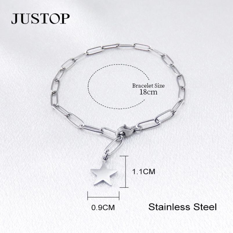 Fashion Electroplated Stainless Steel Thick Chain Bracelet Silver Star Lady Charms Personalized Style Charm Bracelets