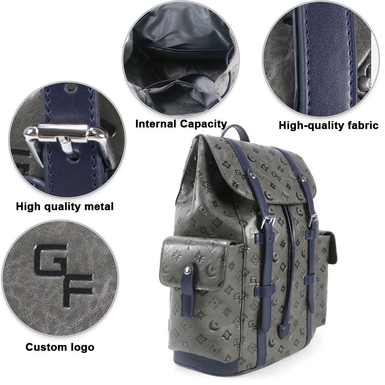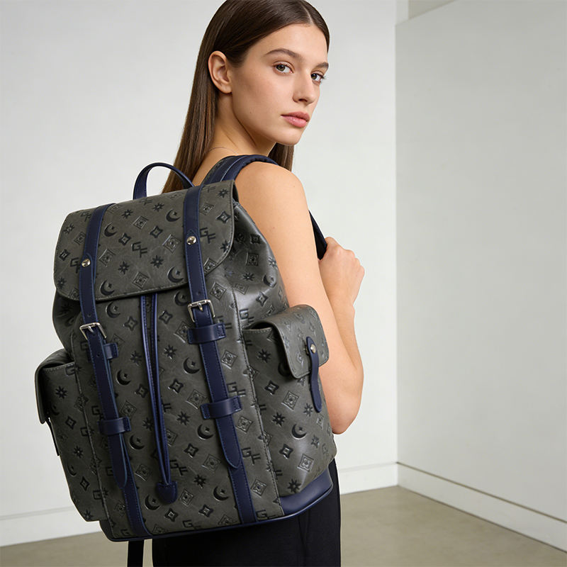 Fashion Embossed Backpack Designer Style Large Capacity Travel Laptop Backpack Casual Business Rucksack