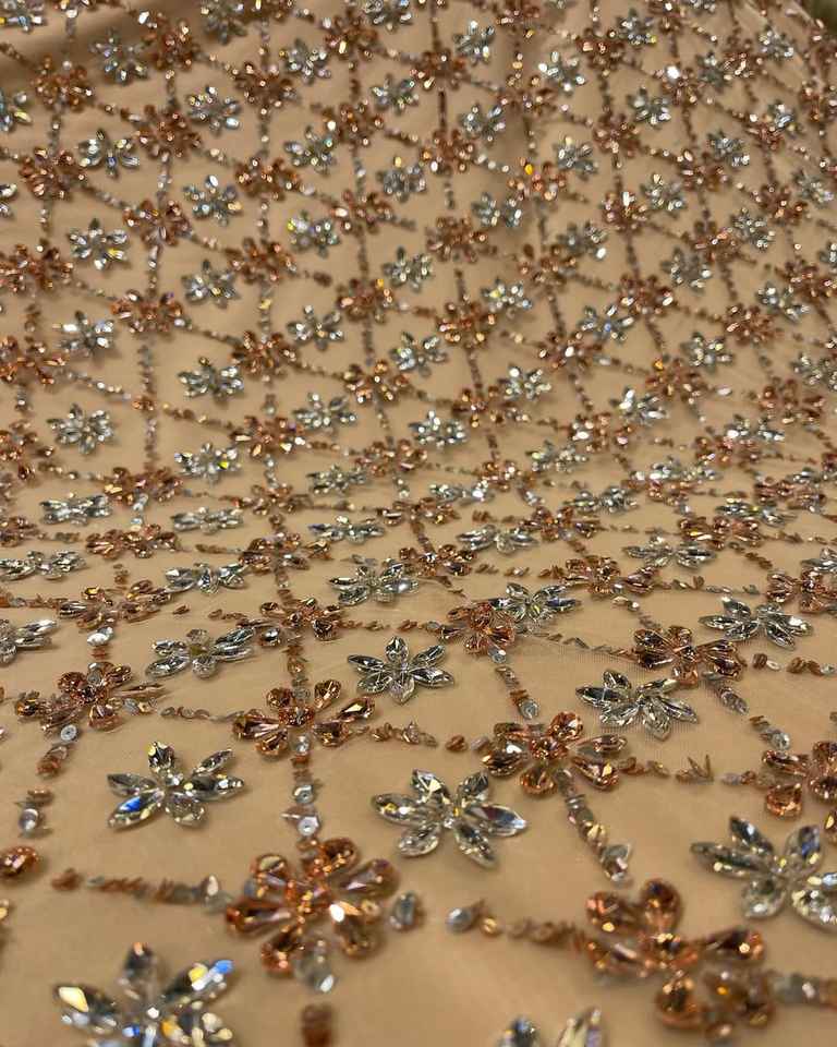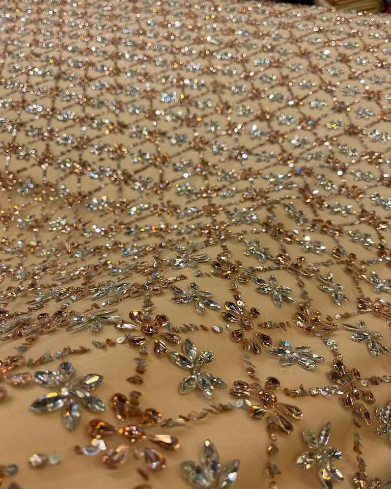 Fashion Embroidery Fabric with Sequins Beads Classic Luxury Material for Bridal Gowns and Party Outfits