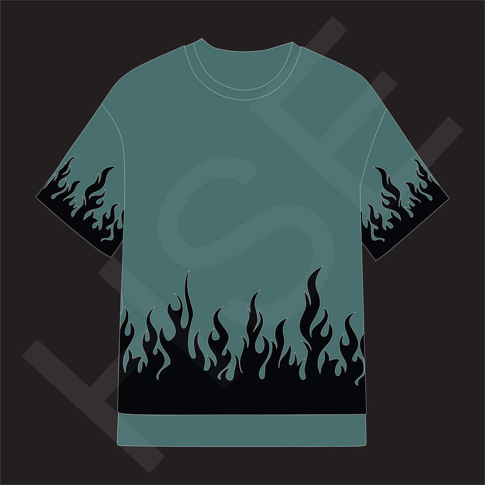 Fashion Flame Border T-Shirt Mens and Womens Street Style