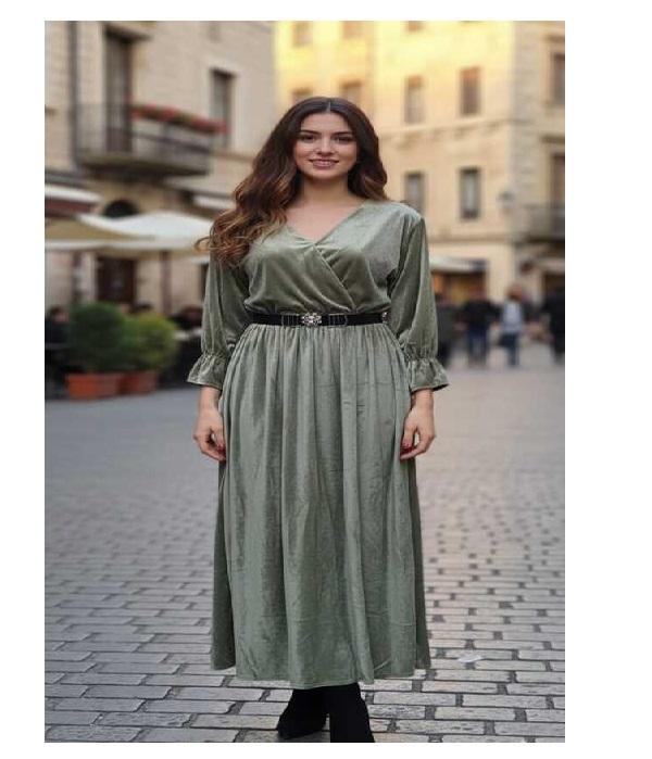 Fashion Forward Eco-Friendly Velvet Dress for Women Coordinated Belt Long Sleeves Natural Waist Soft Feel Fabric Comfort Style