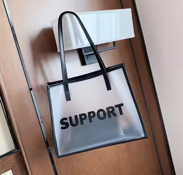 Fashion Frosted Waterproof PVC Transparent Eco Friendly Reusable Beach Tote Bag Women Custom Handle Promotional Clear