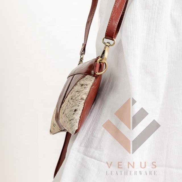 Latest Fashion Women's Single Strap Handmade Embroidery Cross Body Sling Purse Shoulder Bags Lady's Cow Hide Fur Genuine Leather
