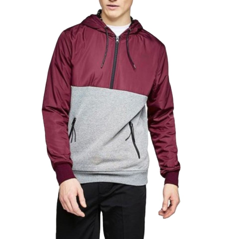 Product name:Burgundy Half Zipper Pullover Hoodie