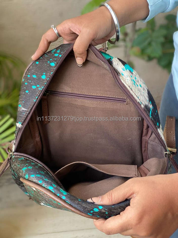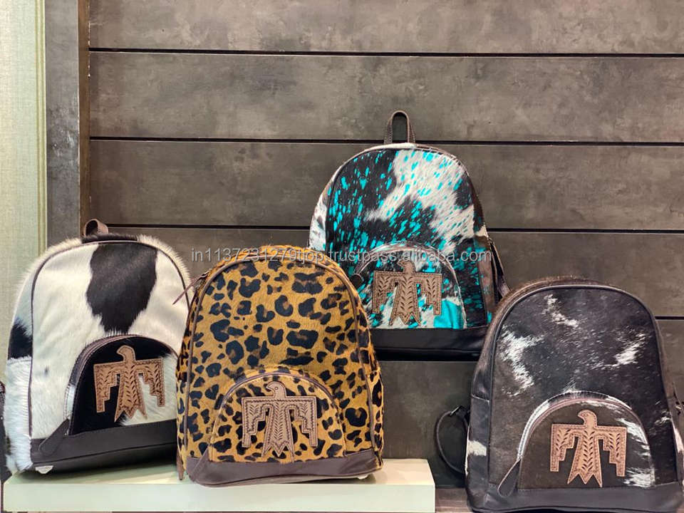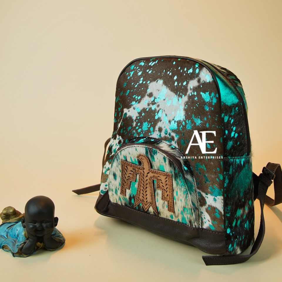 Fashion Hand Tooled Metallic Fur Leather Backpack Stylish Carving Leather Diaper Laptop Backpack Western Style Leather Backpack