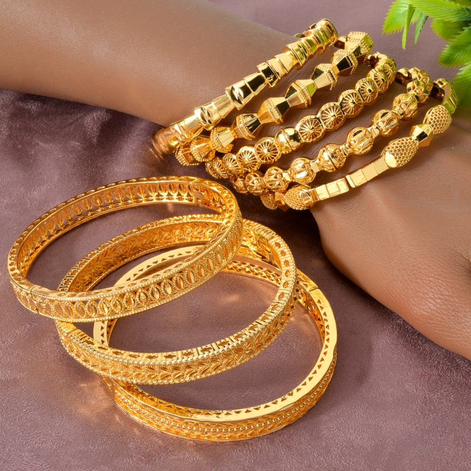 Fashion Hawaiian Jewelry 18K Gold Color Jewelry Dubai Flower Brand African Designer Ethiopian Bracelet Bangle Women