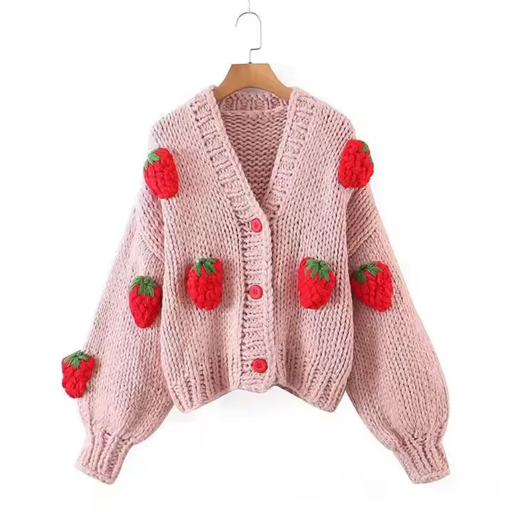 Fashion Heavyweight Knitted Women's Regular Cardigan Sweaters Embroidered Flowers Cute Regular Sleeve Winter Casual Top BD