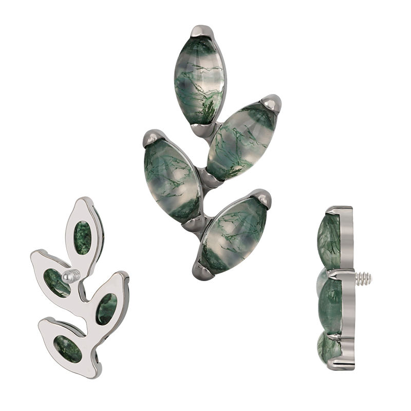 Fashion Helix Earring Labret Piercing Jewelry ASTM F136 Titanium 16G Moss Agate Stone Lip Nose Rings Body Jewelry