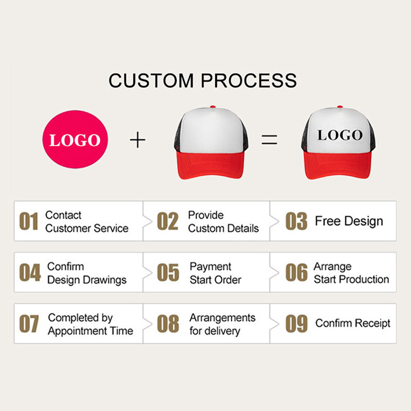 Logo position:brim/visor, front panel, Left panel, Right Panel, back curved part
