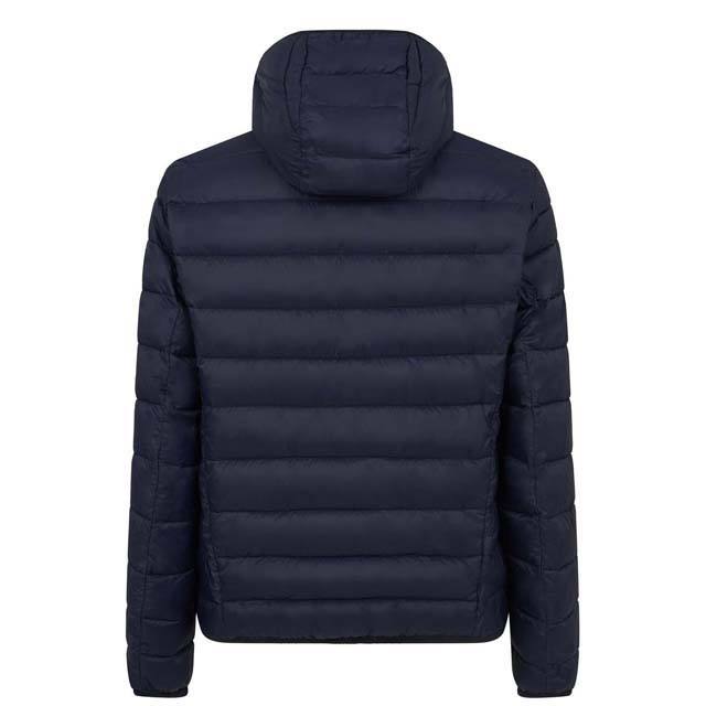 Fashion High Street Men's Autumn Puffer Jacket Hood Canvas Fabric Waterproof Reversible Navy Blue Stand Collar Front Wholesale
