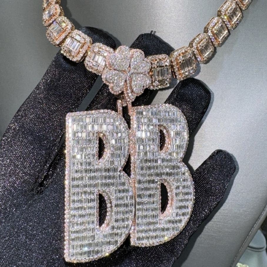 Name:S925 silver custom baguette moissanite fashion jewelry pendant charms