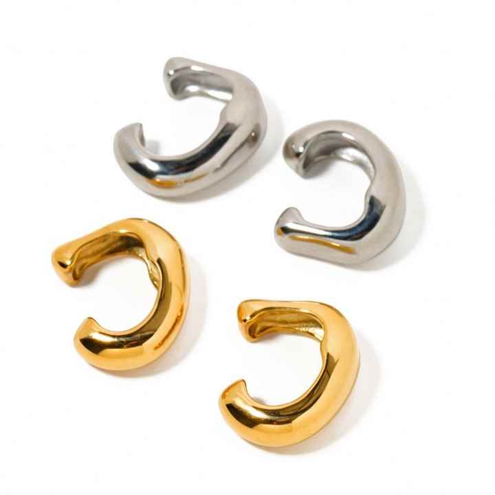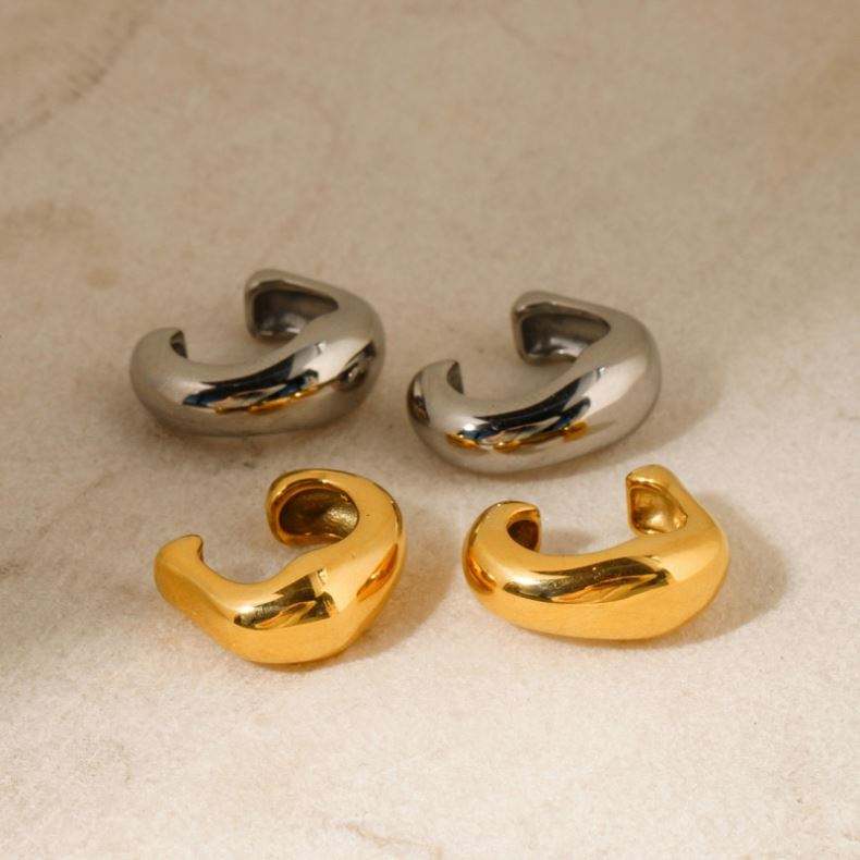 Fashion Jewelry 18K Gold Plated Stainless Steel Irregular CC Ear Cuff Earrings for Women