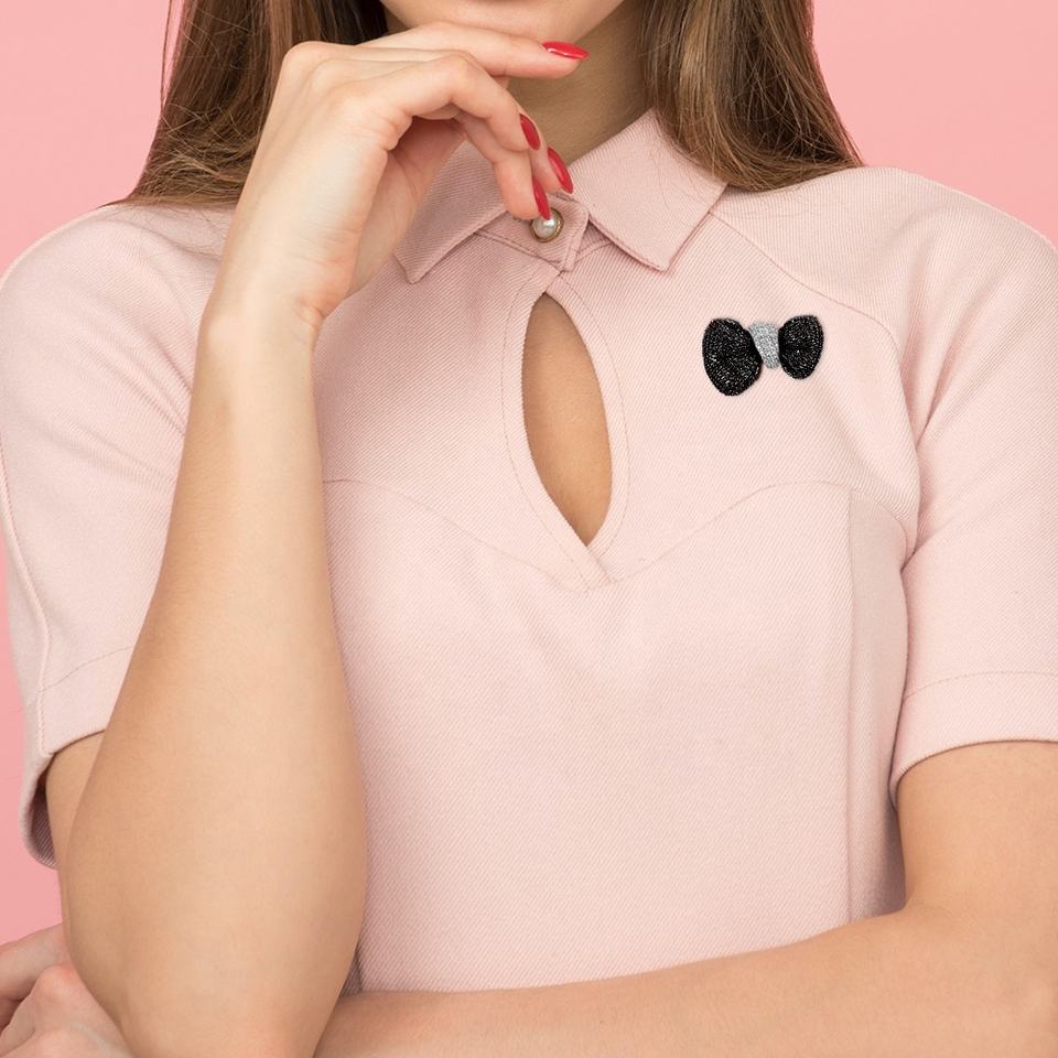 Fashion Jewelry Black Bow Tie CZ Brooch Wedding Engagement Gift Unisex