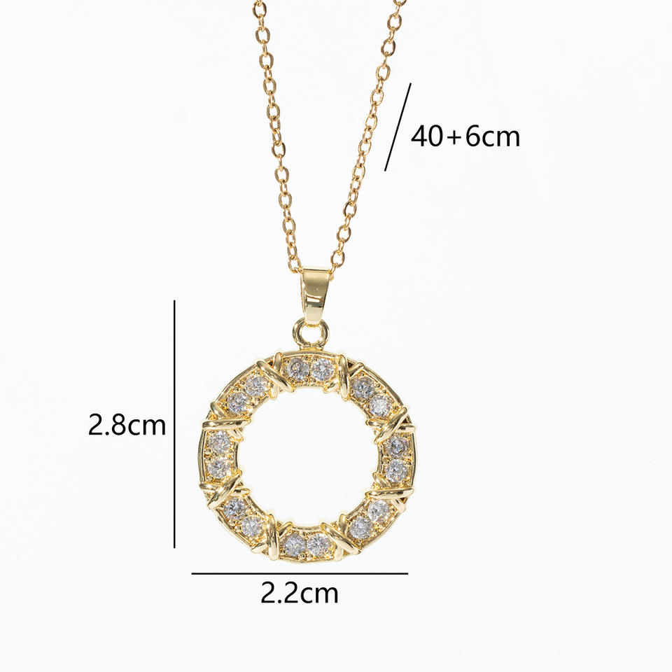 Dainty 14K Gold Plated Circular Pendant Necklaces Round Cubic Zircon Love Knot Pattern Open Back Adjustable Rings Jewelry Set