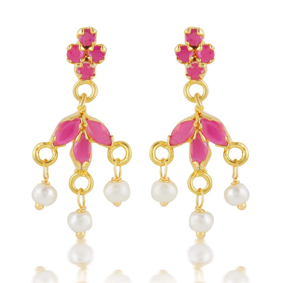 Fashion Jewelry Gold Plated Pink CZ Stone Pearl Drop Collar Choker Necklace Earings Set for Women