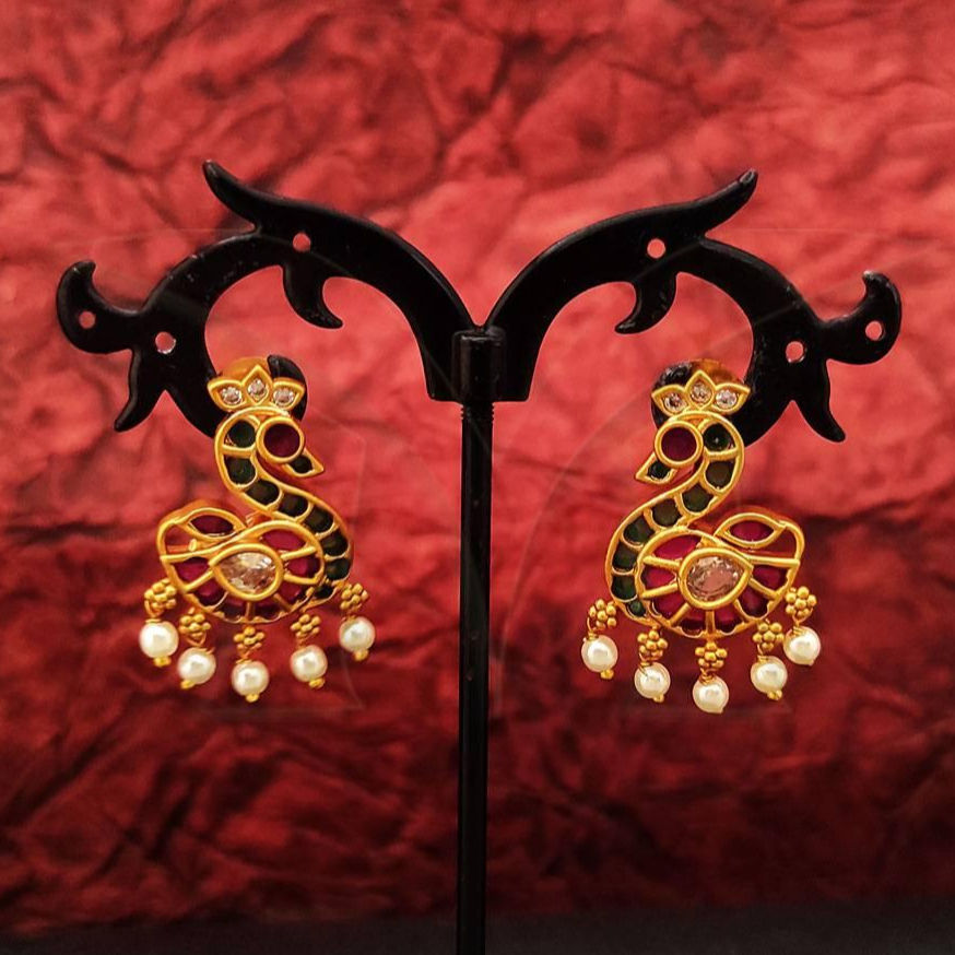 Fashion Jewelry Matte Gold Polish Designer Wear Party Wear Beautiful Design Fancy Style Kemp Earrings Women Set Jewelry Sets