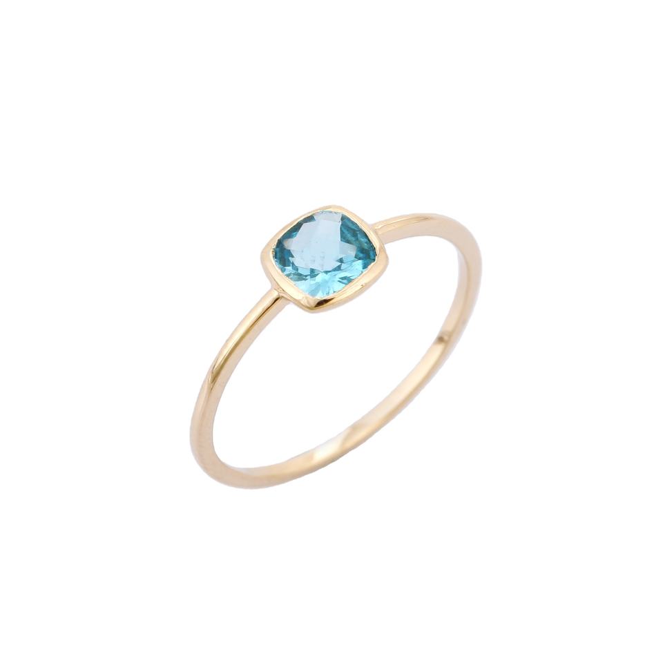 Fashion Jewelry Natural Cushion Blue Topaz Gemstones Solitaire Ring 14K Pure Yellow Gold Rings Jewelry Wholesale Manufacturer