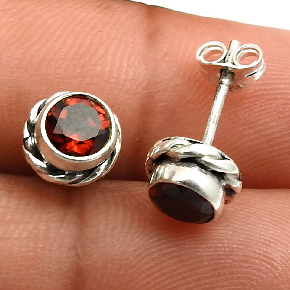 Fashion Jewelry Natural Garnet Gemstone Beautiful Women Stud Earring Wholesale 925 Sterling Silver Jewelry Supplier Manufacturer