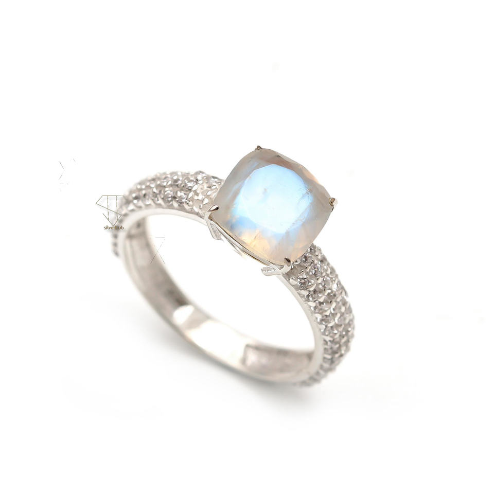 Fashion Jewelry Natural Rainbow Moonstone Gemstone Ring 925 Solid Sterling Silver Statement Ring Jewelry Supply From India