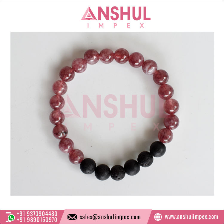 Fashion Jewelry Premium Quality Hot Selling Crystals Gemstone Beaded Pink Tourmaline Lava Stone Diffuser Bracelet