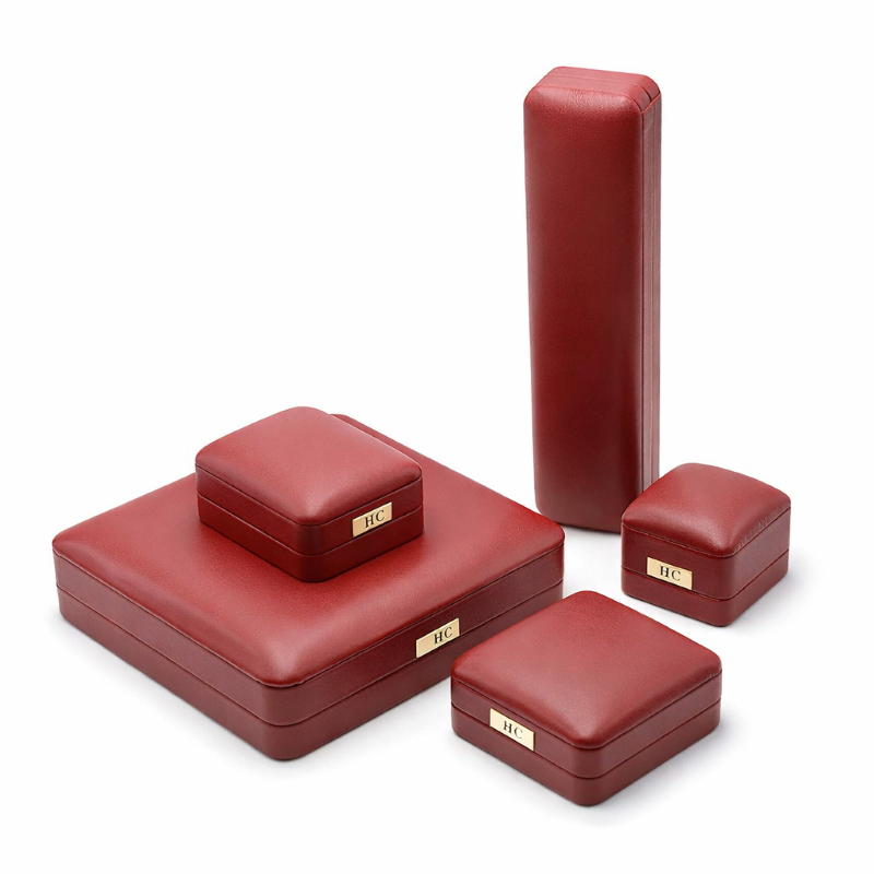 Fashion Jewelry Set Box Luxury Custom Rigid Hinged Leatherette Jewelry Box Suede Insert Foil Stamping Custom Logo OEM Service
