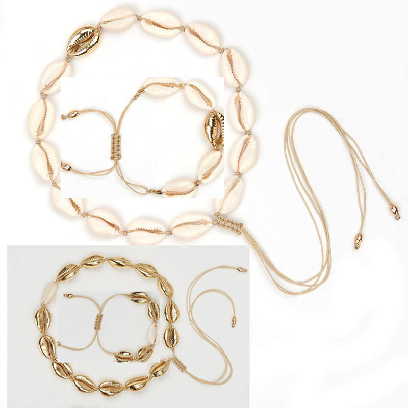 Fashion Jewelry Set Shell Cotton Thread Necklace Bracelet Rose Gold Silver Party Wear Geometric Design Yiwu Origin X0024