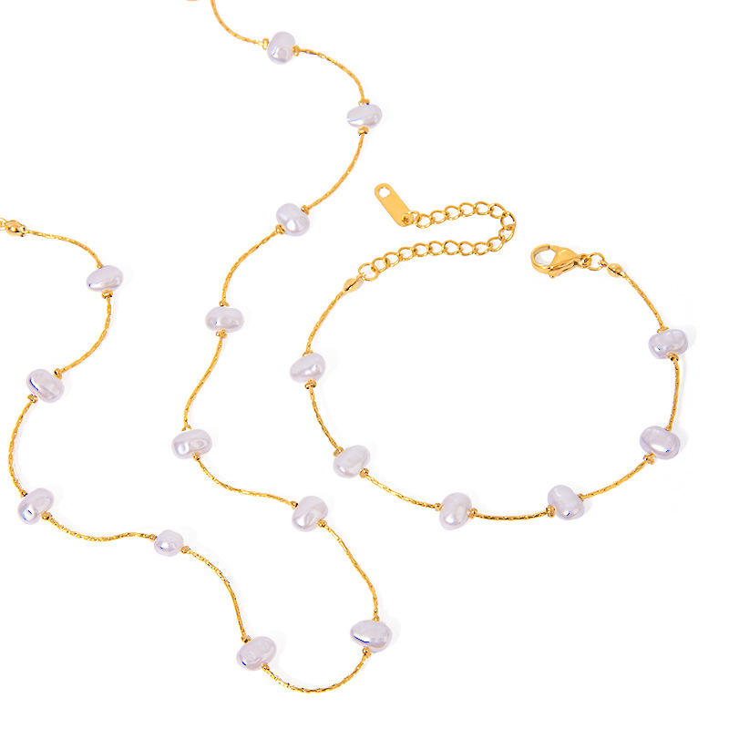 Fashion Jewelry Set Stainless Steel 18k Gold Shaped Pearl Necklace Simple Baroque Pearl Bracelet for Women