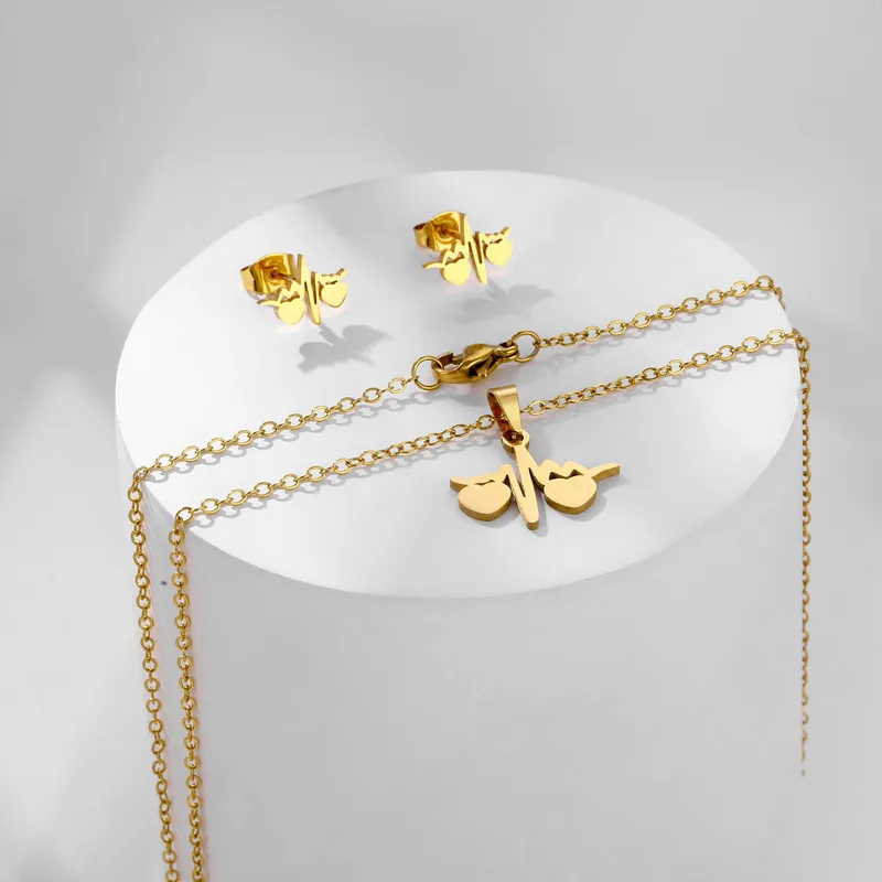 Fashion Jewelry Set for Women Heartbeat Design Hollow Heart Necklace and Earrings Smooth Stainless Steel INS Style Jewellery
