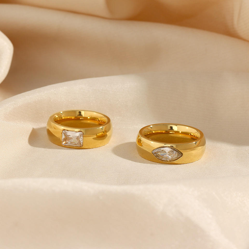 Fashion Jewelry Trendy Stainless Steel PVD 18K Gold Plated Marquise Square Cubic Zircon Classic Band Ring for Women Men