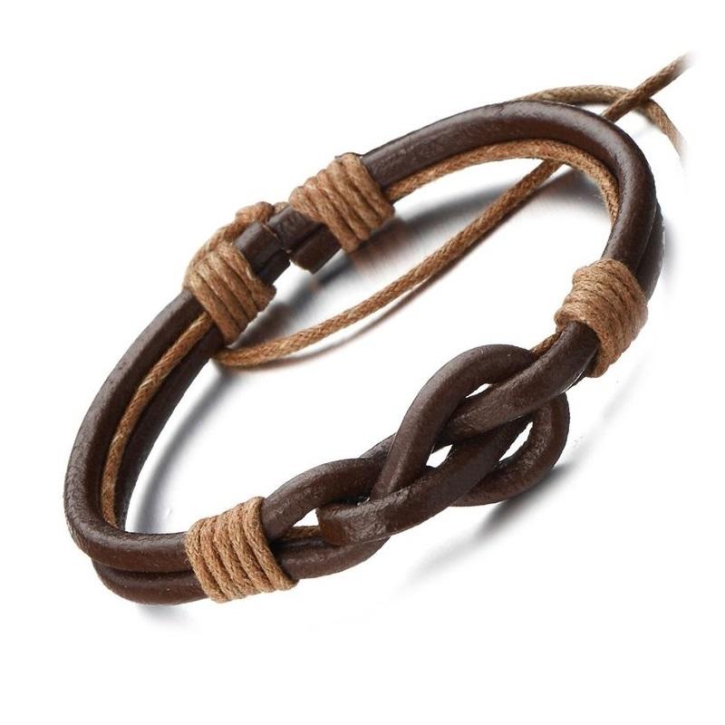 Fashion Jewelry Vintage Handwork Weave 8 Words Wide Leather Bracelet Simple Cuff Bracelets Bangles for Women Modern Design