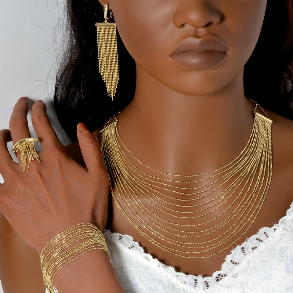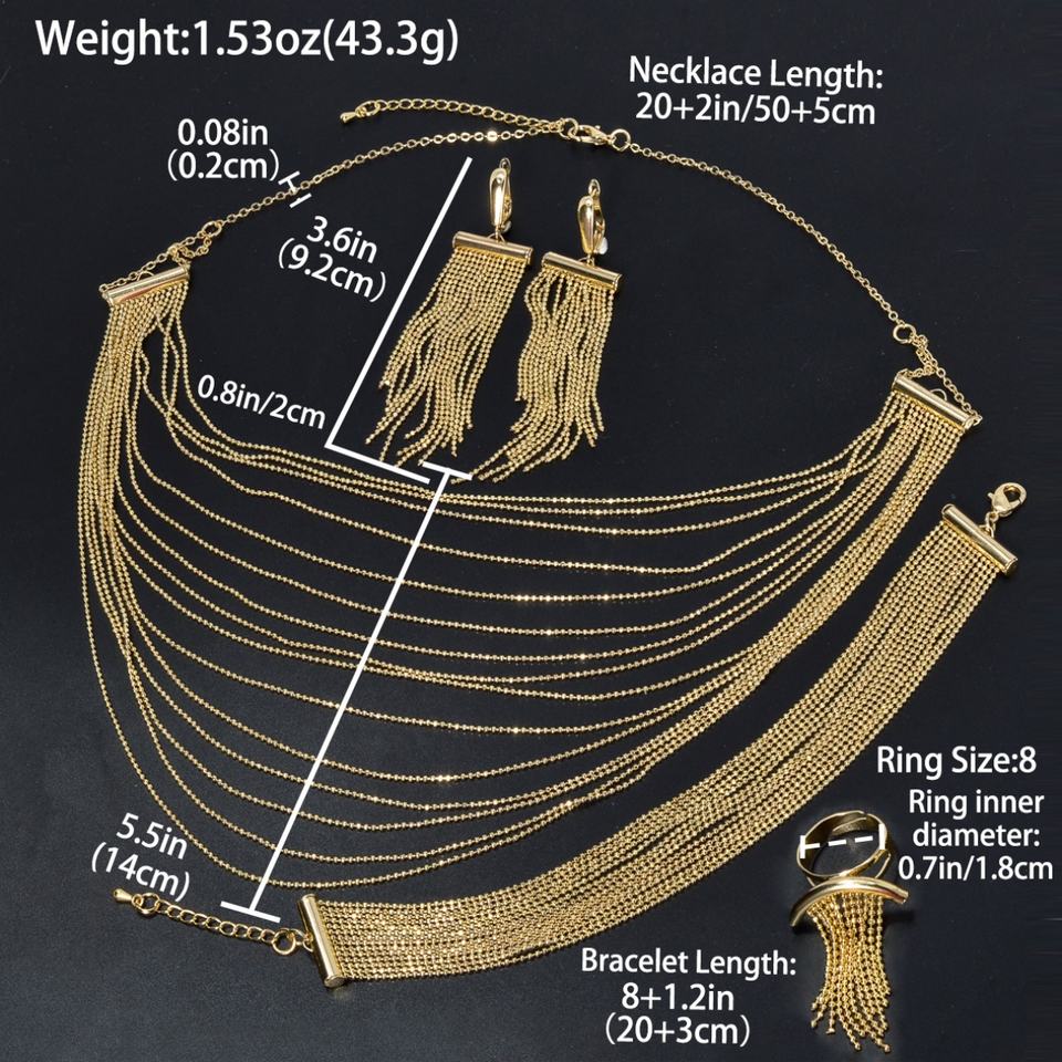 Fashion Jewelry Wholesale 14k Gold Plated Zircon Tassels Ball Bridal Jewelry Sets for Women Party Wedding