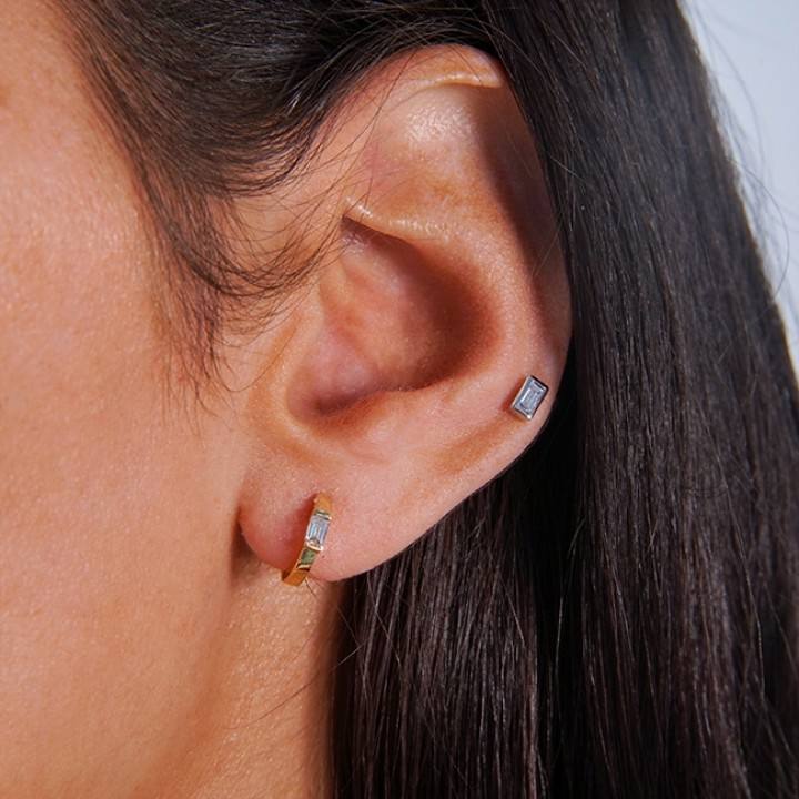 Fashion Jewelry Wholesale 14k Real Gold Yellow Jewelry Emerald cut Diamond Bezel Setting Hoop Style Small Earrings for Women