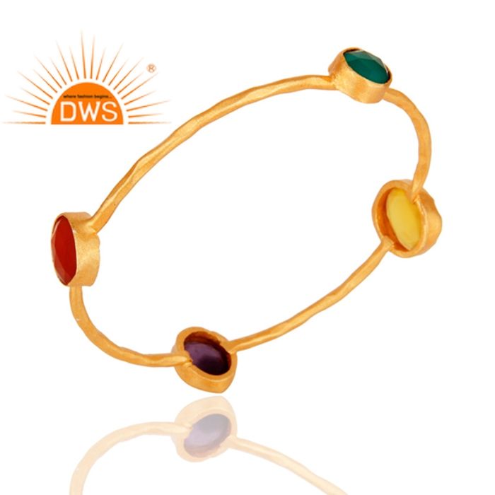Fashion Jewelry Wholesaler Gold Plated Brass Designer Girls Bangle Multi Natural Gemstone Bangle Jewelry