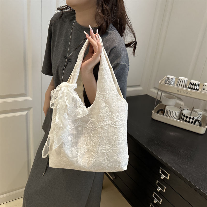 Fashion Lace Women's Large Capacity Floral Shoulder Bag Japan Style Portable Handbags for Girls Book Shopping